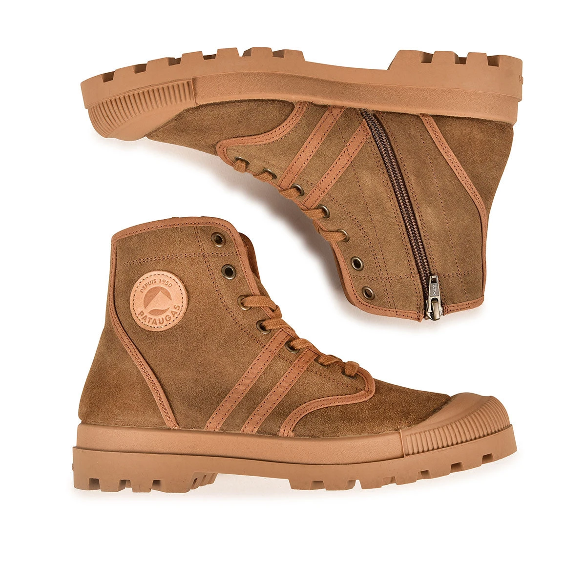 Notre iconique, depuis 1950. Passionné par la montagne, René Elissabide a inventé ce brodequin en toile souple, à tige montante, extrêmement robuste et confortable pour la marche et la randonnée. Fiers de cet héritage qui incarne l’âme de Pataugas, nous avons depuis retravaillé son design : semelle repensée, poids allégé, silhouette affinée… pour que l’Authentique vous accompagne dans toutes vos vies, tout au long de votre vie. Cette version hivernale vous tiendra les pieds bien au chaud ! Déclinée dans des cuirs suédés monochromes, elle est entièrement doublée de Sherpa, un textile doux et mousseux, similaire à la laine. Nous l’avons également revue avec zip intérieur, qui facilite le chaussant.