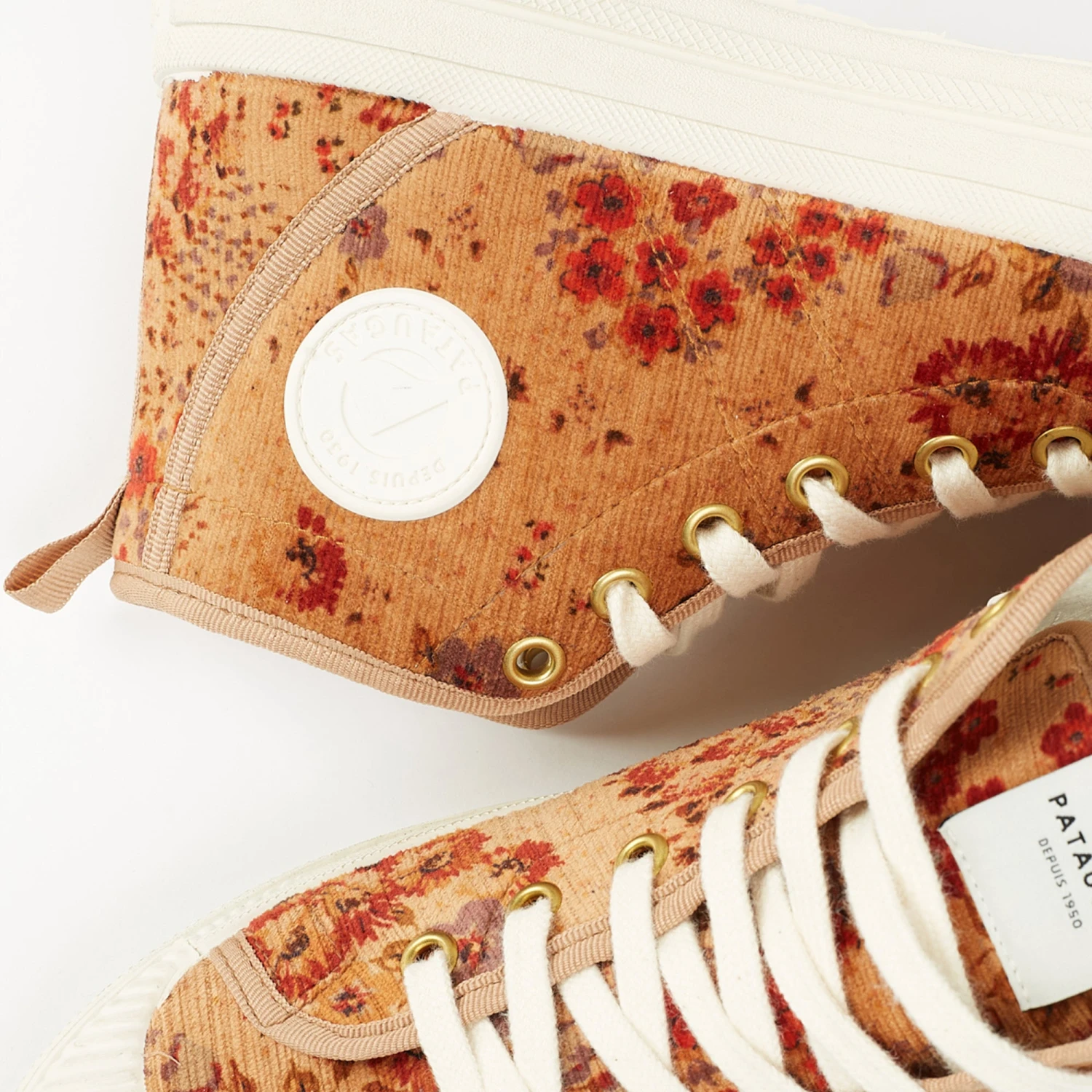 La basket champêtre de la saison ! La ETCHE se pare de petites fleurs sauvages et colorées, imprimées sur du velours côtelé. Déclinée en trois coloris : noir, brique ou beige, elle apportera une touche de couleur à votre quotidien, ainsi qu’à vos balades dominicales.