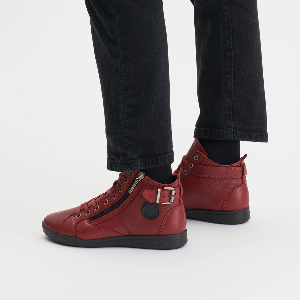 La basket montante Palme Sangria, modèle iconique de la marque Pataugas revient sur la scène avec une version retravaillée et très féminine. Grâce à un nouveau logo et son cuir fin, cette chaussure en cuir est une valeur sure. Sa semelle FLEX est injectée pour un confort et un maintien parfait. Sa couleur rouge sangria est lumineuse et donnera du pep’s à vos tenues de saison. Ce modèle taille petit.
